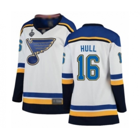 Women's St. Louis Blues #16 Brett Hull Fanatics Branded White Away Breakaway 2019 Stanley Cup Final Bound Hockey Jersey