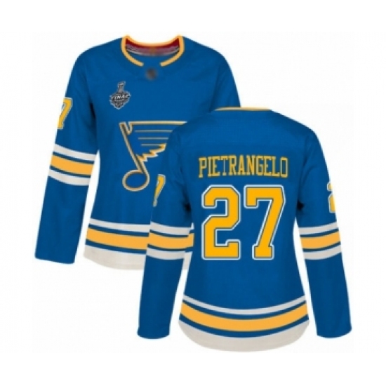 Women's St. Louis Blues #27 Alex Pietrangelo Authentic Navy Blue Alternate 2019 Stanley Cup Final Bound Hockey Jersey