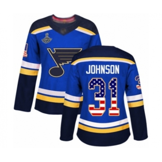 Women's St. Louis Blues #31 Chad Johnson Authentic Blue USA Flag Fashion 2019 Stanley Cup Champions Hockey Jersey