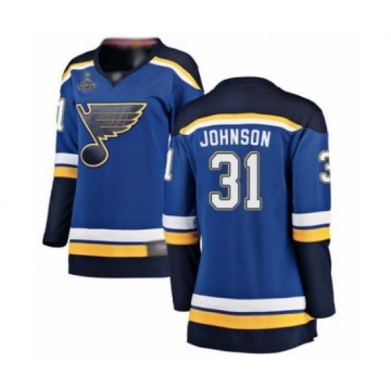 >Women's St. Louis Blues #31 Chad Johnson Fanatics Branded Royal Blue Home Breakaway 2019 Stanley Cup Champions Hockey Jersey