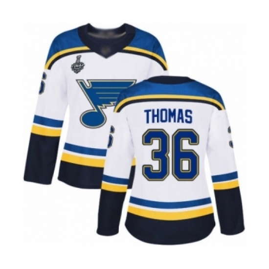 Women's St. Louis Blues #36 Robert Thomas Authentic White Away 2019 Stanley Cup Final Bound Hockey Jersey