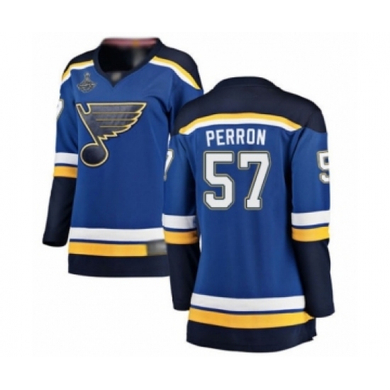 >Women's St. Louis Blues #57 David Perron Fanatics Branded Royal Blue Home Breakaway 2019 Stanley Cup Champions Hockey Jersey