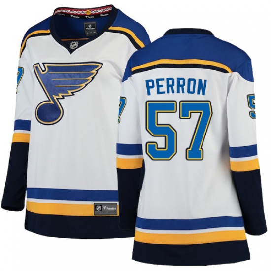 >Women's St. Louis Blues #57 David Perron Fanatics Branded White Away Breakaway NHL Jersey