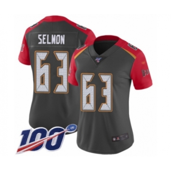 >Women's Tampa Bay Buccaneers #63 Lee Roy Selmon Limited Gray Inverted Legend 100th Season Football Jersey