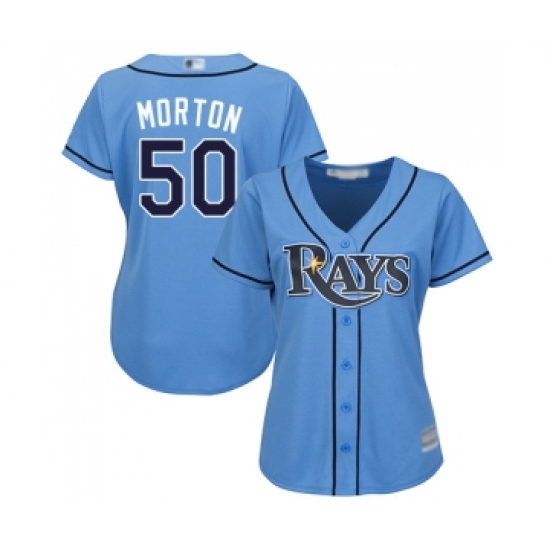 >Women's Tampa Bay Rays #50 Charlie Morton Replica Light Blue Alternate 2 Cool Base Baseball Jersey