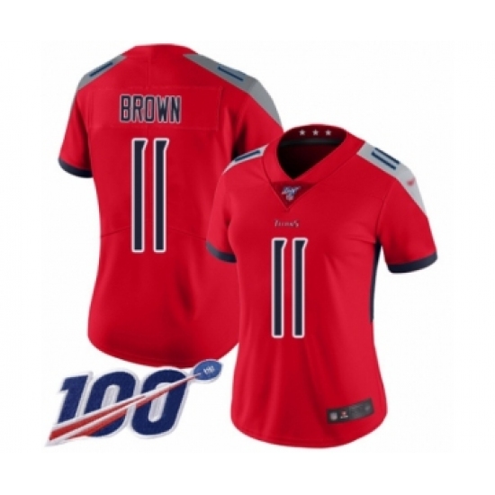 Women's Tennessee Titans #11 A.J. Brown Limited Red Inverted Legend 100th Season Football Jersey
