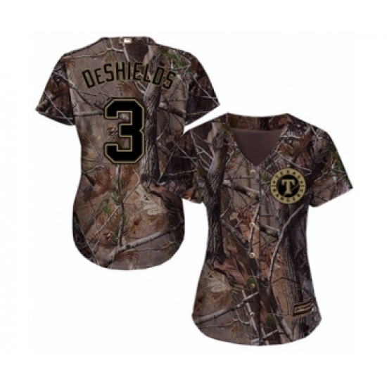 Women's Texas Rangers #3 Delino DeShields Jr. Authentic Camo Realtree Collection Flex Base Baseball Player Jersey