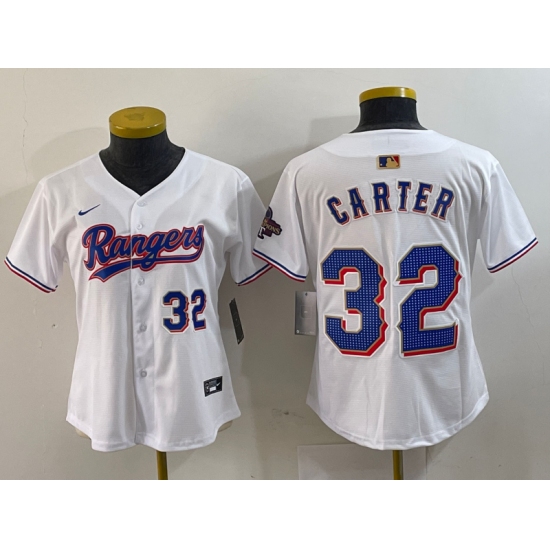 Women's Texas Rangers #32 Evan Carter Number White 2024 Gold Collection Limited Cool Base Jersey