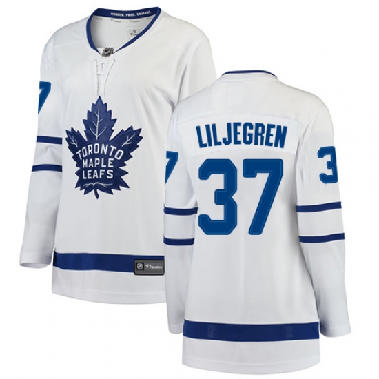 Women's Toronto Maple Leafs #37 Timothy Liljegren Authentic White Away Fanatics Branded Breakaway NHL Jersey