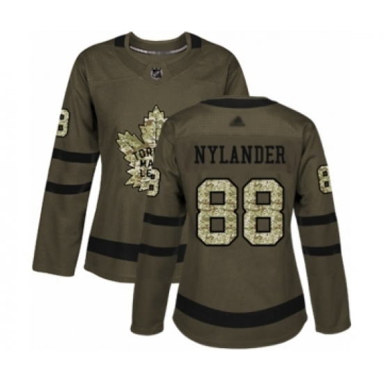 >Women's Toronto Maple Leafs #88 William Nylander Authentic Green Salute to Service Hockey Jersey
