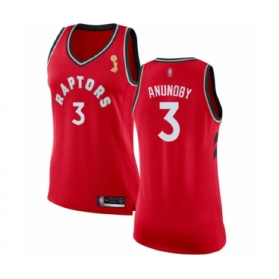 >Women's Toronto Raptors #3 OG Anunoby Swingman Red 2019 Basketball Finals Champions Jersey - Icon Edition