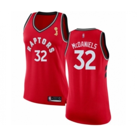 >Women's Toronto Raptors #32 KJ McDaniels Swingman Red 2019 Basketball Finals Champions Jersey - Icon Edition