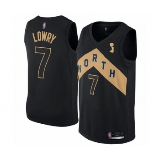 >Women's Toronto Raptors #7 Kyle Lowry Swingman Black 2019 Basketball Finals Champions Jersey - City Edition