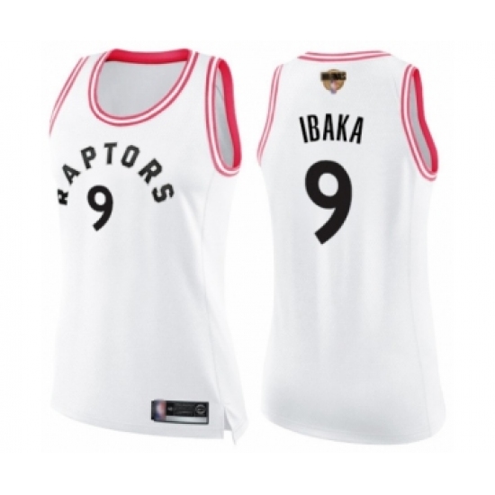 Women's Toronto Raptors #9 Serge Ibaka Swingman White Pink Fashion 2019 Basketball Finals Bound Jersey
