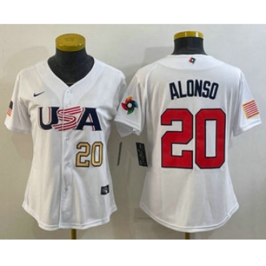 Women's USA Baseball #20 Pete Alonso Number 2023 White World Classic Stitched Jerseys