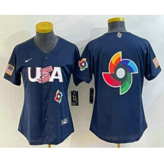 Women's USA Baseball 2023 Navy Big Logo World Classic Stitched Jersey