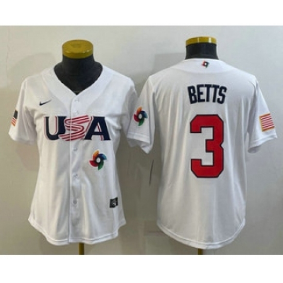 Women's USA Baseball #3 Mookie Betts 2023 White World Classic Replica Stitched Jerseys