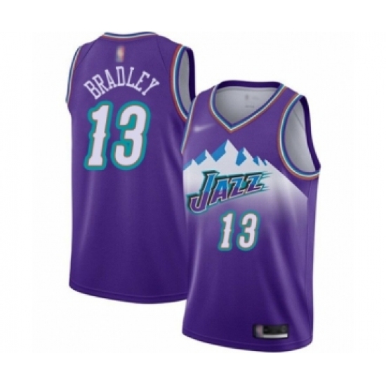 >Women's Utah Jazz #13 Tony Bradley Swingman Purple Hardwood Classics Basketball Jersey