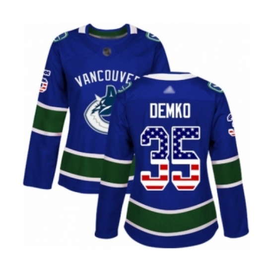 >Women's Vancouver Canucks #35 Thatcher Demko Authentic Blue USA Flag Fashion Hockey Jersey