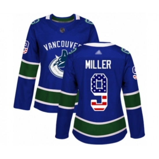 Women's Vancouver Canucks #9 J.T. Miller Authentic Blue USA Flag Fashion Hockey Jersey