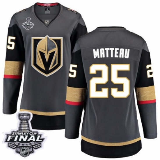 >Women's Vegas Golden Knights #25 Stefan Matteau Authentic Black Home Fanatics Branded Breakaway 2018 Stanley Cup Final NHL Jersey