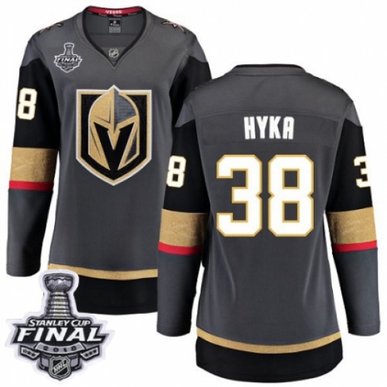 >Women's Vegas Golden Knights #38 Tomas Hyka Authentic Black Home Fanatics Branded Breakaway 2018 Stanley Cup Final NHL Jersey