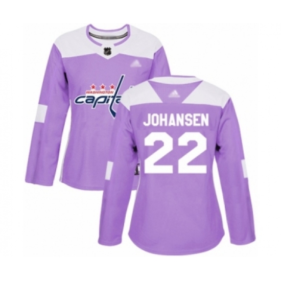 >Women's Washington Capitals #22 Lucas Johansen Authentic Purple Fights Cancer Practice Hockey Jersey