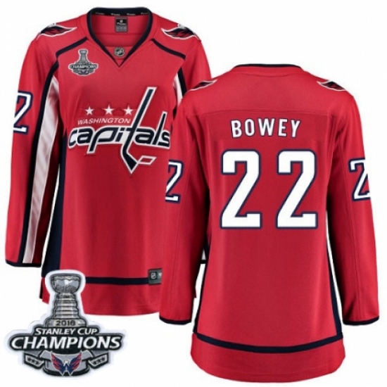 >Women's Washington Capitals #22 Madison Bowey Fanatics Branded Red Home Breakaway 2018 Stanley Cup Final Champions NHL Jersey