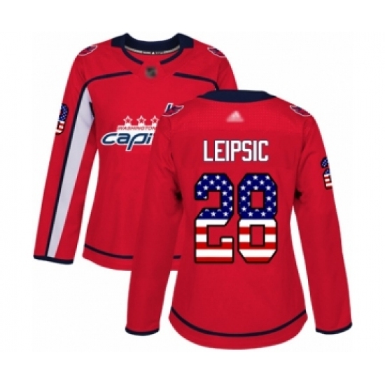 Women's Washington Capitals #28 Brendan Leipsic Authentic Red USA Flag Fashion Hockey Jersey