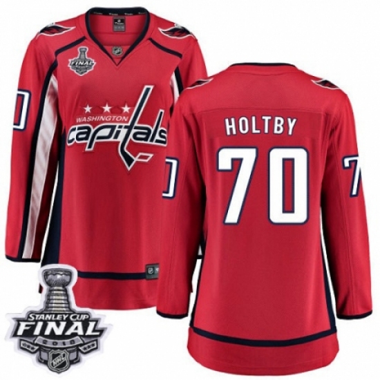 Women's Washington Capitals #70 Braden Holtby Fanatics Branded Red Home Breakaway 2018 Stanley Cup Final NHL Jersey
