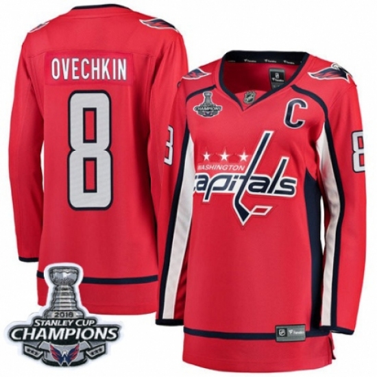 >Women's Washington Capitals #8 Alex Ovechkin Fanatics Branded Red Home Breakaway 2018 Stanley Cup Final Champions NHL Jersey