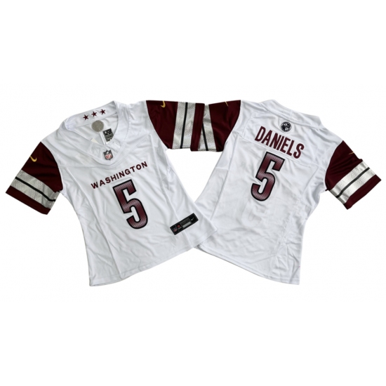 >Women's Washington Commanders #5 Jayden Daniels White 2024 F.U.S.E. Draft Stitched Jersey(Run Small)