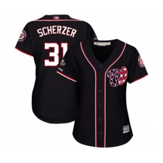 Women's Washington Nationals #31 Max Scherzer Authentic Navy Blue Alternate 2 Cool Base 2019 World Series Champions Baseball Jersey