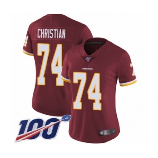 >Women's Washington Redskins #74 Geron Christian Burgundy Red Team Color Vapor Untouchable Limited Player 100th Season Football Jersey