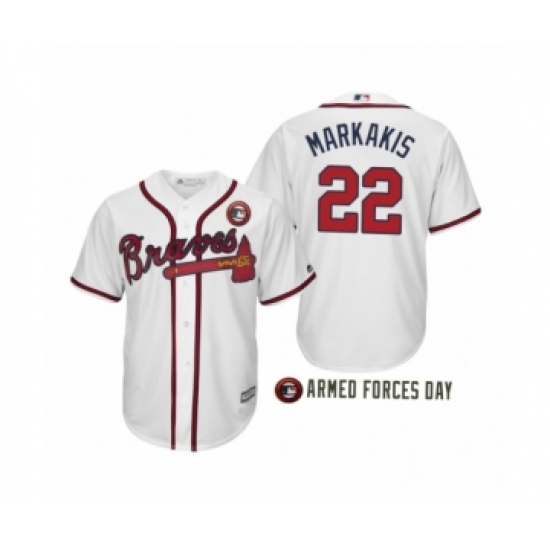 >Youth 2019 Armed Forces Day Nick Markakis #22 Atlanta Braves White Jersey