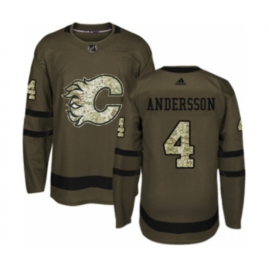 Youth Adidas Calgary Flames #4 Rasmus Andersson Authentic Green Salute to Service NHL Jersey