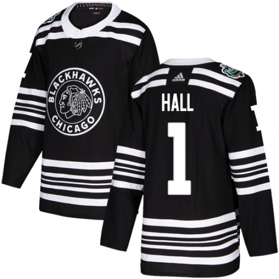 Women's Adidas Chicago Blackhawks #1 Glenn Hall Authentic Black 2019 Winter Classic NHL Jersey