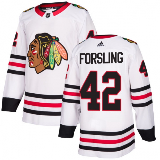 Home>NHL>Chicago Blackhawks>Gustav Forsling>Youth Adidas Chicago Blackhawks #42 Gustav Forsling Authentic White Away NHL Jersey