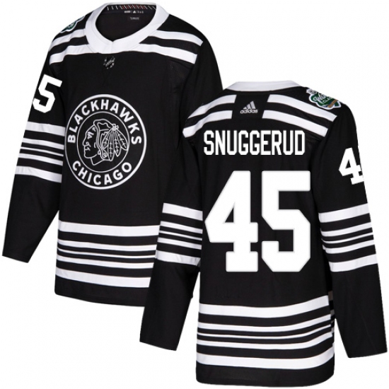 >Youth Adidas Chicago Blackhawks #45 Luc Snuggerud Authentic Black 2019 Winter Classic NHL Jersey
