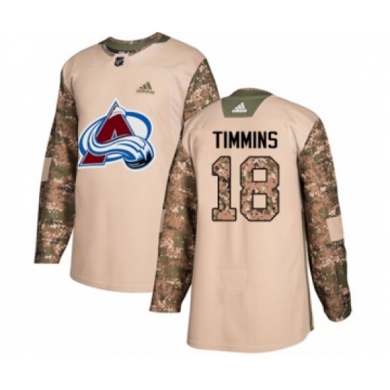 >Youth Adidas Colorado Avalanche #18 Conor Timmins Authentic Camo Veterans Day Practice NHL Jersey