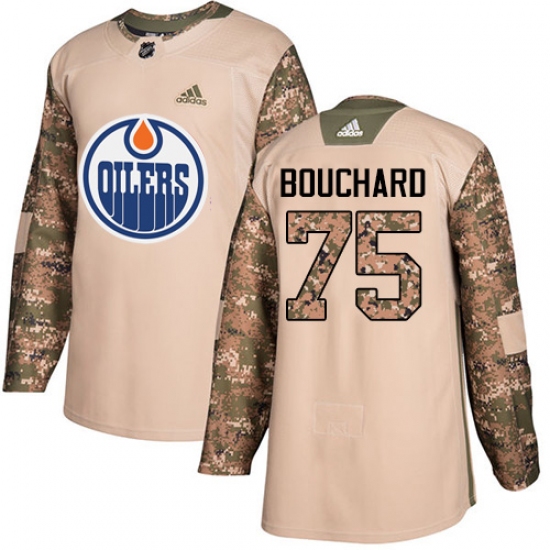 Men's Adidas Edmonton Oilers #75 Evan Bouchard Authentic Camo Veterans Day Practice NHL Jersey