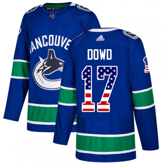 >Youth Adidas Vancouver Canucks #17 Nic Dowd Authentic Blue USA Flag Fashion NHL Jersey