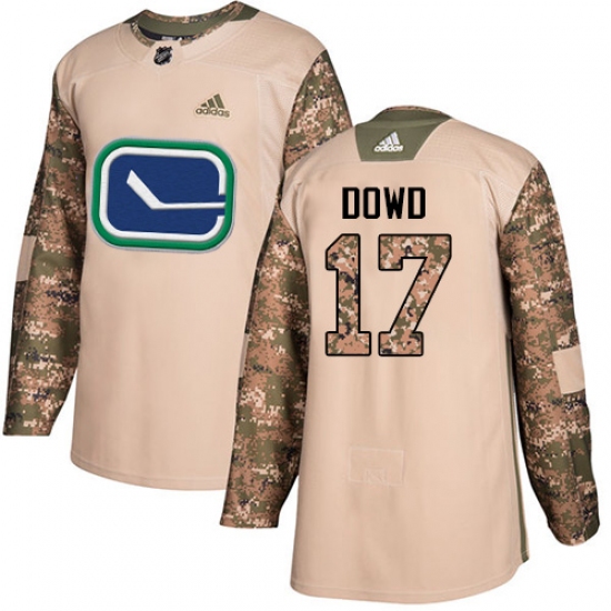 >Youth Adidas Vancouver Canucks #17 Nic Dowd Authentic Camo Veterans Day Practice NHL Jersey