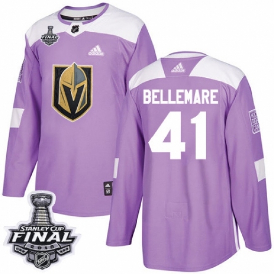 Youth Adidas Vegas Golden Knights #41 Pierre-Edouard Bellemare Authentic Purple Fights Cancer Practice 2018 Stanley Cup Final NHL Jersey