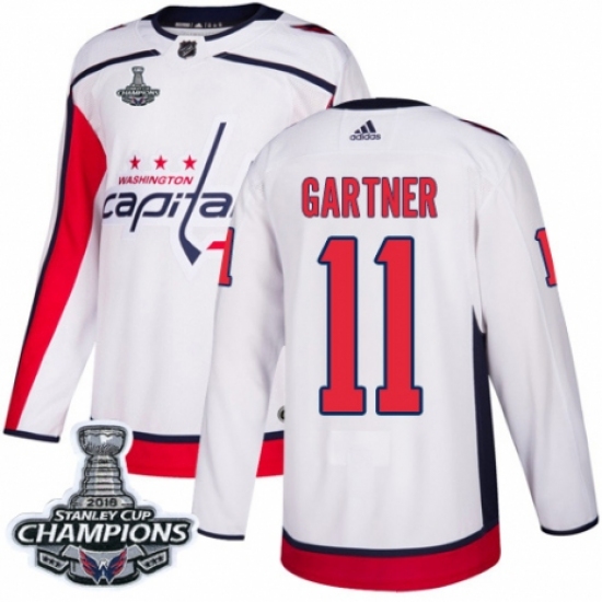 Youth Adidas Washington Capitals #11 Mike Gartner Authentic White Away 2018 Stanley Cup Final Champions NHL Jersey