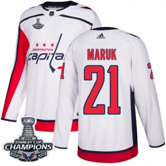 Youth Adidas Washington Capitals #21 Dennis Maruk Authentic White Away 2018 Stanley Cup Final Champions NHL Jersey