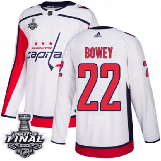 Youth Adidas Washington Capitals #22 Madison Bowey Authentic White Away 2018 Stanley Cup Final NHL Jersey