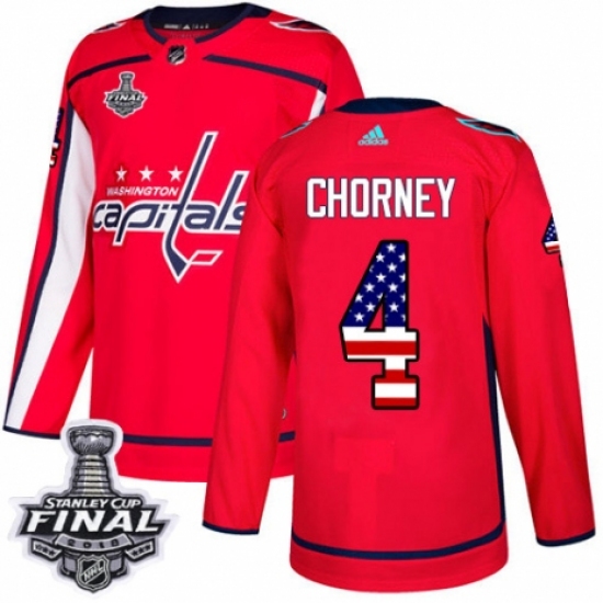 Men's Adidas Washington Capitals #4 Taylor Chorney Authentic Red USA Flag Fashion 2018 Stanley Cup Final NHL Jersey