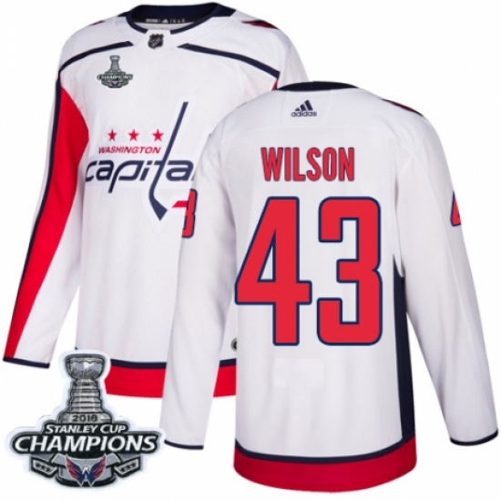 Youth Adidas Washington Capitals #43 Tom Wilson Authentic White Away 2018 Stanley Cup Final Champions NHL Jersey