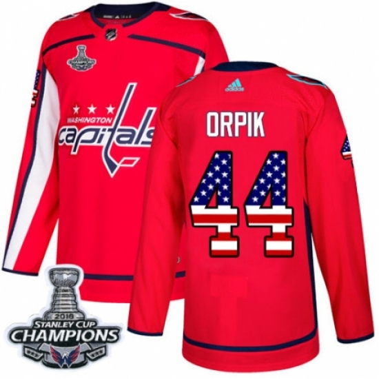 Women's Adidas Washington Capitals #44 Brooks Orpik Authentic Red USA Flag Fashion 2018 Stanley Cup Final Champions NHL Jersey
